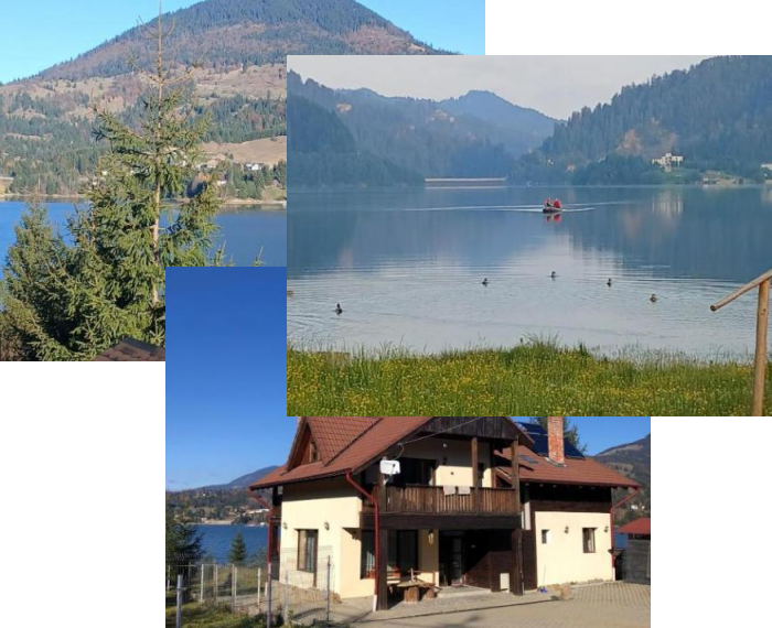 Pensiunea dispune de 4 camere cu pat matrimonial si balcon, doua bai (o baie deserveste doua dormitoare), sufragerie, loc de luat masa, bucatarie, baie de serviciu, terase, foisor. Fiind amplasata in imediata apropiere a lacului cat si la liziera padurii este locul perfect pentru iubitorii de pescuit, sporturi nautice, drumetii, culesul ciupercilor si fructelor de padure, ciclism montan.